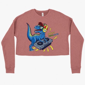 Women’s Cropped Fleece Party DinoMite Sweatshirt – Dinosaur Sweatshirt